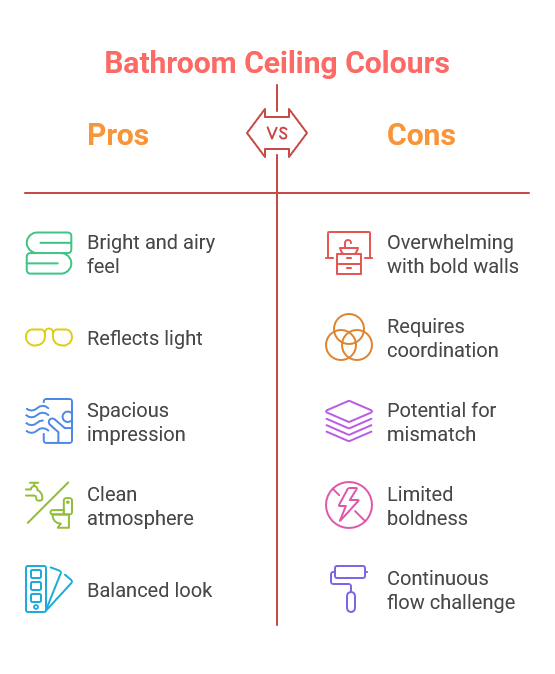 Pick a bathroom ceiling paint that harmonises with the wall colours of your bathroom. This way, you can achieve a more balanced and cohesive look.